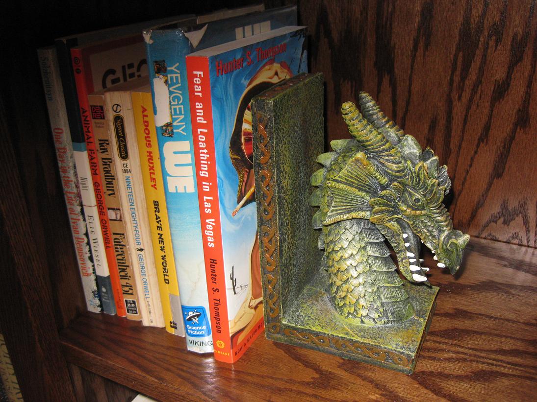 I reckon the one on top, guarding my dystopias, is Smaug, and that’s Glaurung underneath. Bit of a family resemblance, wouldn’t you say?
