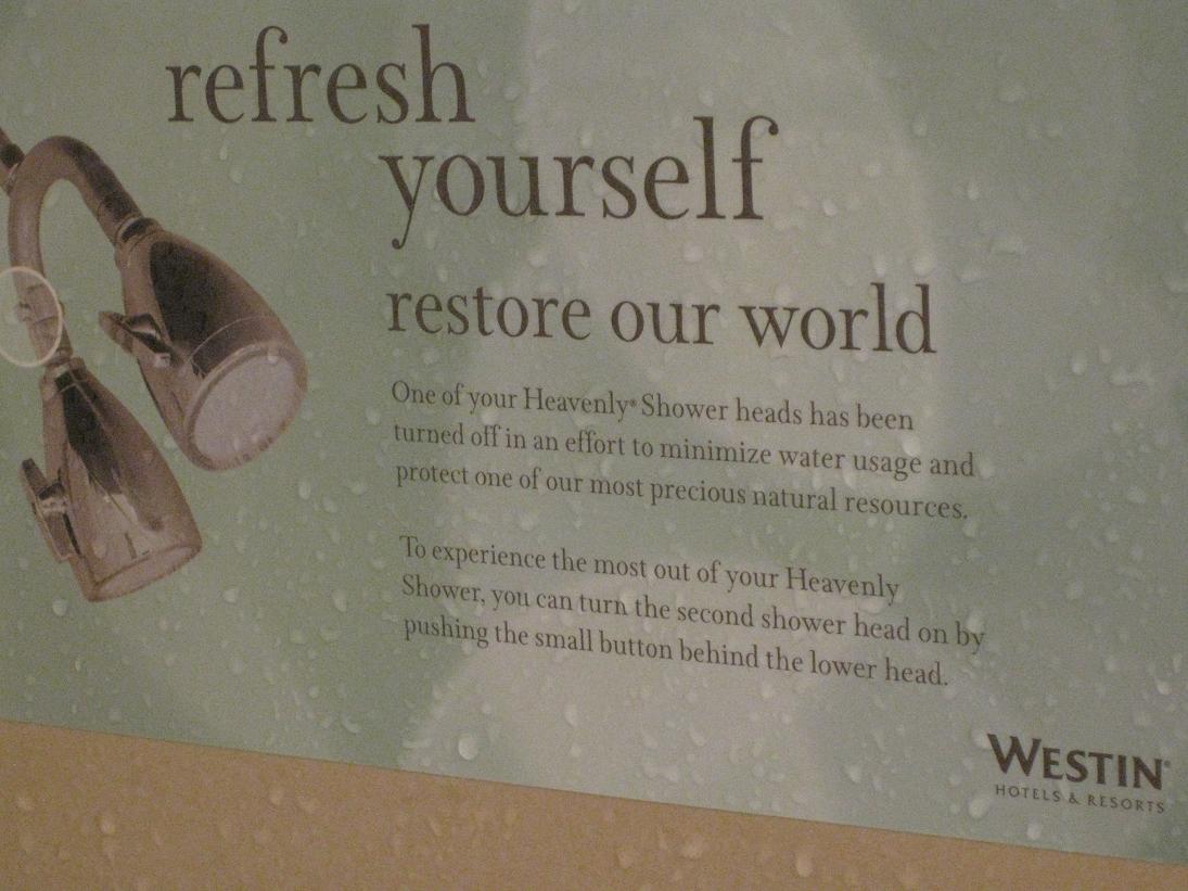 Executive: A lot of hotels are doing green stuff. We need to show customers we’re green, too. Tell them we’re all about saving water.