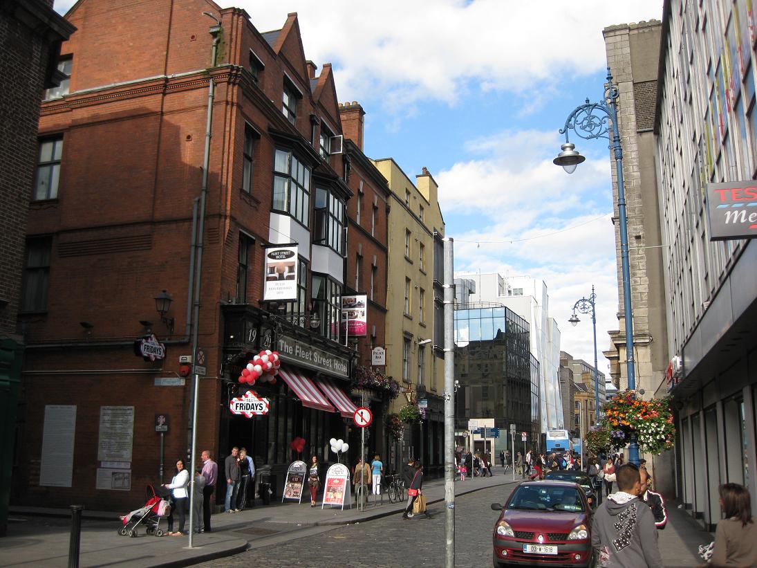 Dublin. The Temple Bar area, near our hotel, is where all the tourists go at night. Lots of music, lots of people, lots of signs proclaiming “authentic” Irish food, beer, etc.