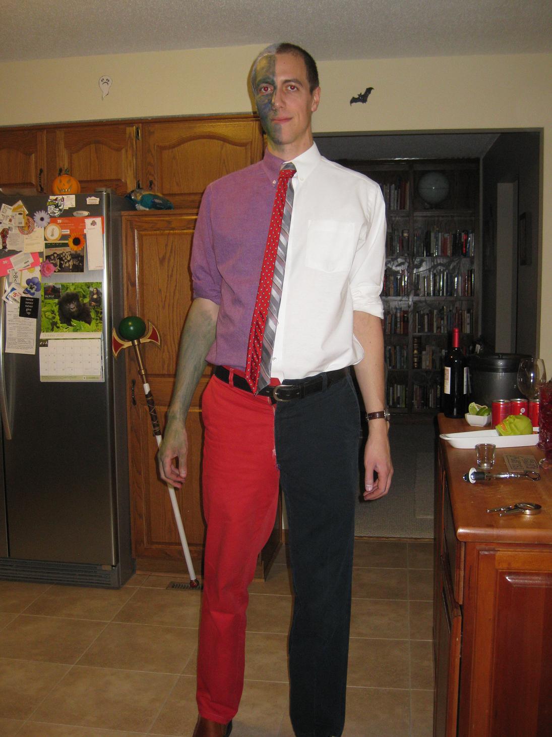 Me as Two-Face. Yes, I am freakishly tall. The costume is homemade, and 95% my wife’s work. Love it! That scepter in the background belonged to a girl who dressed up as the singer from the Do You Wanna Date My Avatar video.