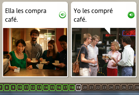 For starters, it’s getting difficult. We’re at the edge of what I remember from high school and college, so the free ride is over – I actually have to learn from Rosetta itself. We’re getting into past tense, indirect objects, and other grammatical stuff that really makes me think. Vocabulary is easy, but grammar is a mofo. That said, the only way to master it is practice, and that’s exactly what Rosetta Stone gives you tons of.