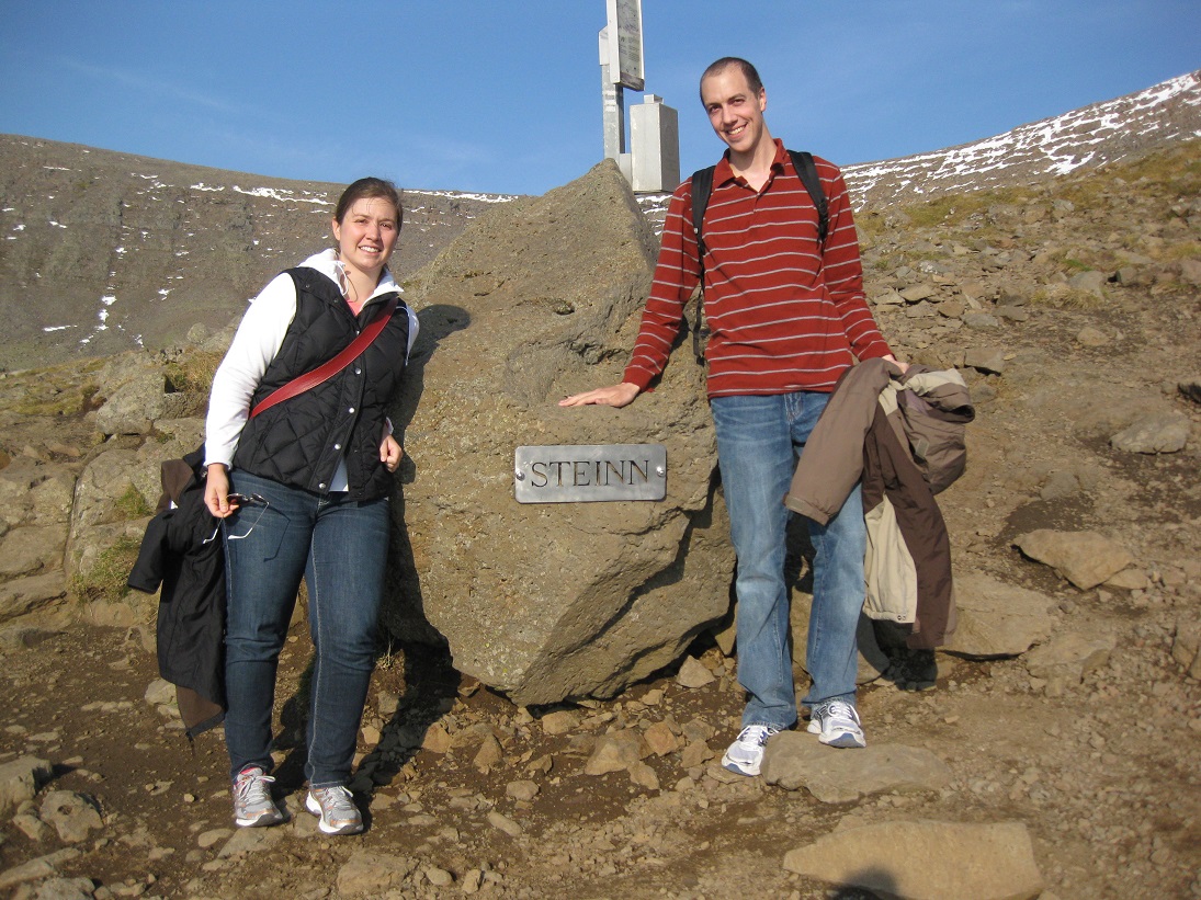 The Dynamic Duo at the peak of their arduous (for us, anyway) hike up Mount Esja. The trail was so steep that getting down was almost as tough as ascending. “Steinn” means “stone,” if you were wondering.