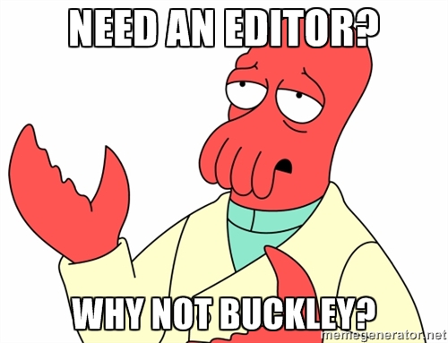 I even have one of those Twitter things the cool kids are always talking about: @buckleyeditor