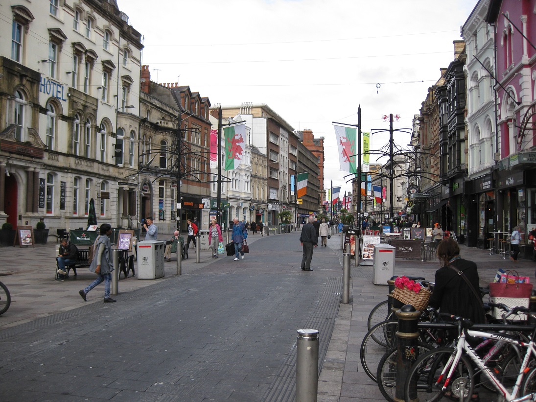 Cardiff, Wales. From the eight hours or so we spent there, Wales doesn’t seem – superficially – too different from England. You do see a lot of Welsh flags everywhere, much like Texas is full of Texan flags (but isn’t that different from Oklahoma). Those green and white flags with the red dragons, those are the Welsh flags. Also, lots of signs are in English and Welsh, which is interesting (linguistically) and annoying (practically).