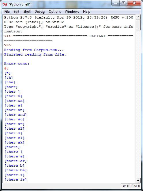 This algorithm is cool, but rather limited at the moment. It can notice correlations between letters, and fairly simple strings, but it doesn’t do well with more complex patterns. I won’t bore you with the details, but rest assured I’m working on it.