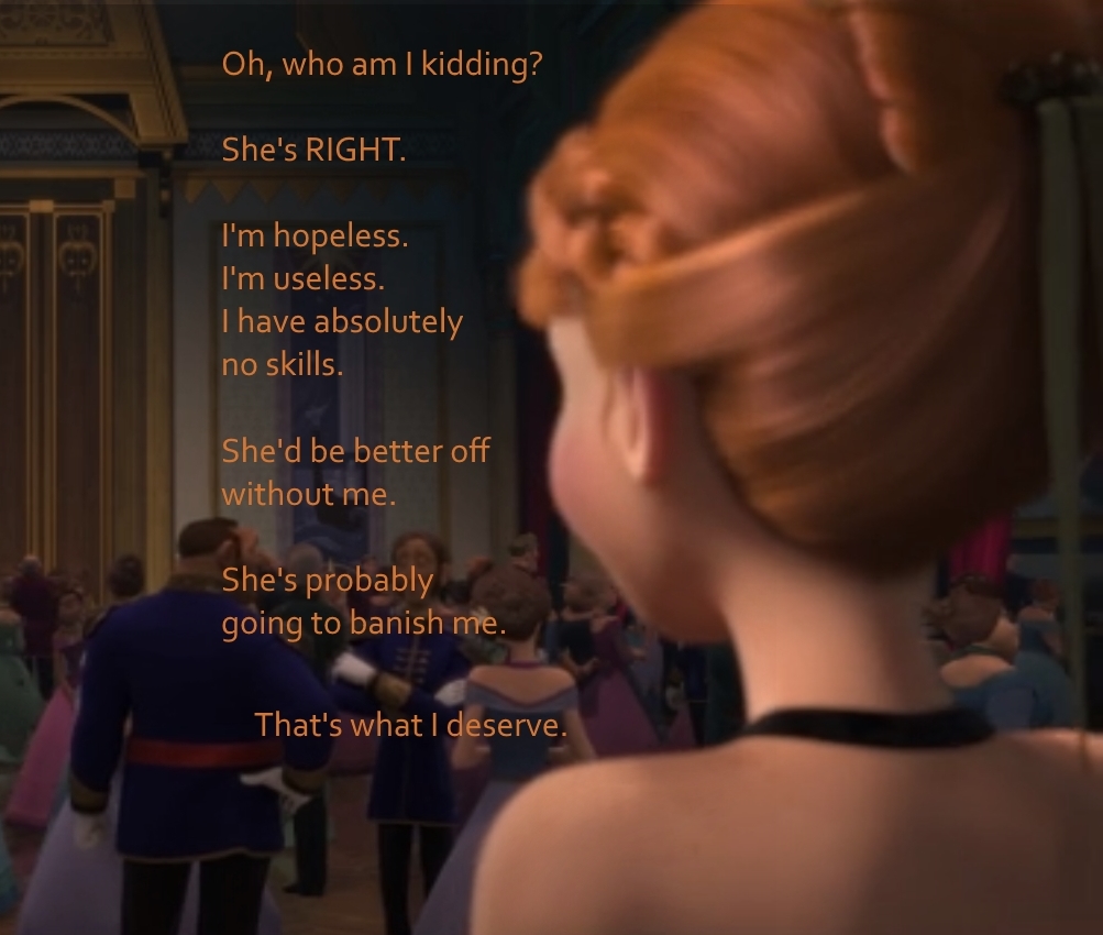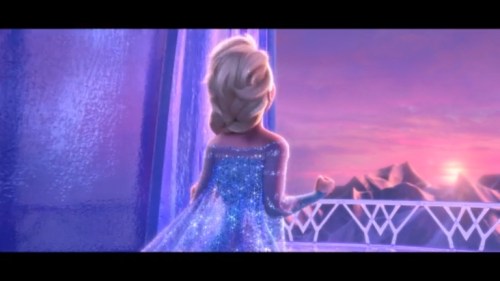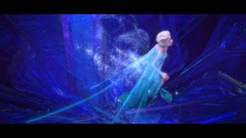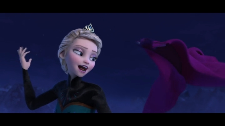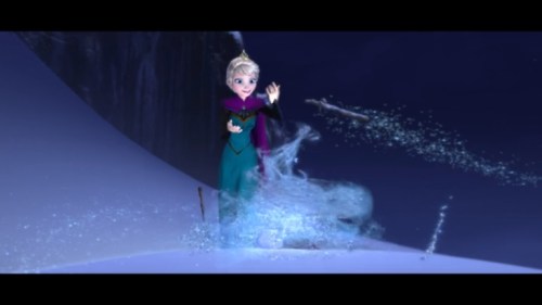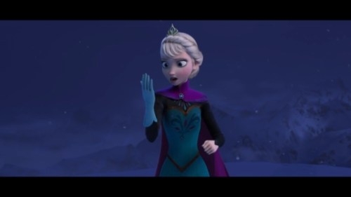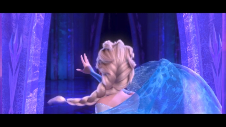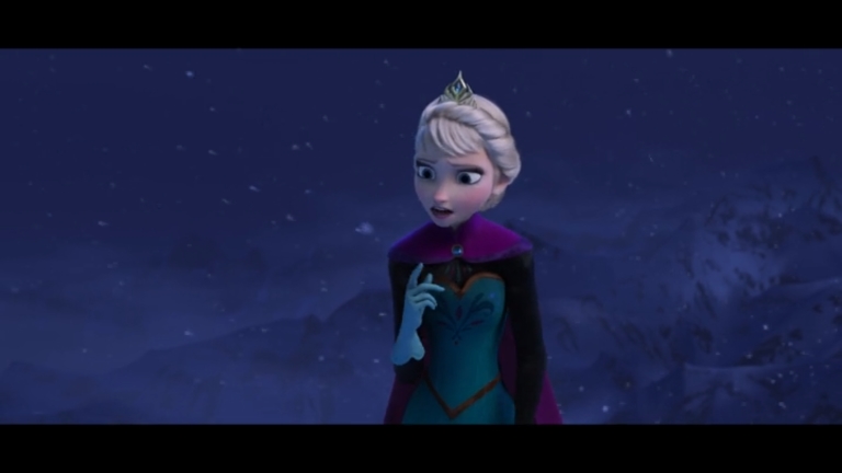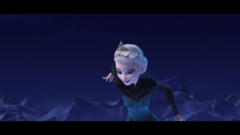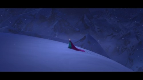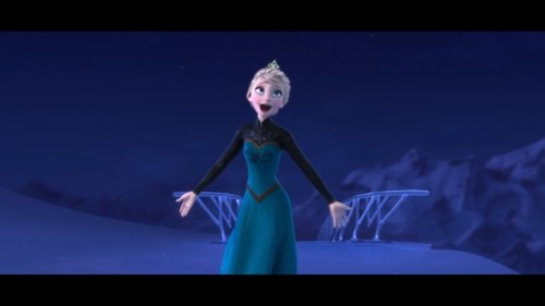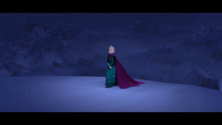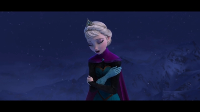 Some quick context. “Let It Go” takes place about half an hour into the film. Elsa (the one singing) has magic ice powers, but she’s suppressed them and isolated herself all her life, afraid of hurting those she loves (especially her younger sister, Anna). When Elsa comes of age, she is crowned Queen of Arendelle, but an argument with Anna makes her lose control of her emotions, and her power flares up, horrifying everyone. Elsa flees into the mountains alone. Cue music.