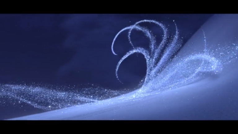 I’ve already talked about how free she is (and isn’t), so I won’t belabor that any more. Let’s look at what she’s actually doing. In the past, her powers have allowed her to do two things: create snow (usually with her hands), and create ice (usually with her feet). Now she’s doing something different. She’s creating a “rough draft” in snow, then refining it into ice.