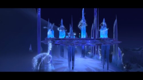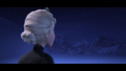 This whole scene has paralleled her coronation scenes, but with everything inverted. Think about it. She’s Queen of Arendelle, and then she’s queen of the empty waste. She takes off her gloves in fear, and then in triumph. It was day, now it’s night. She flees the human palace and enters an ice palace. She was crowned by someone else — and now, at the end, she uncrowns herself. The anti-coronation is complete.