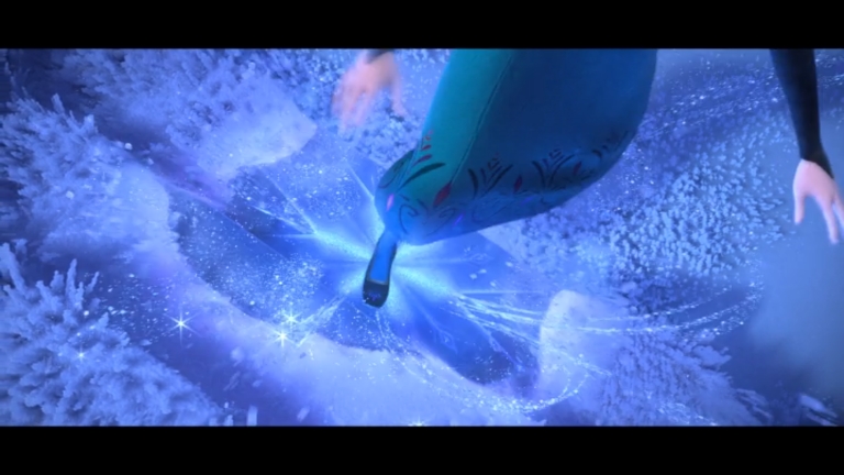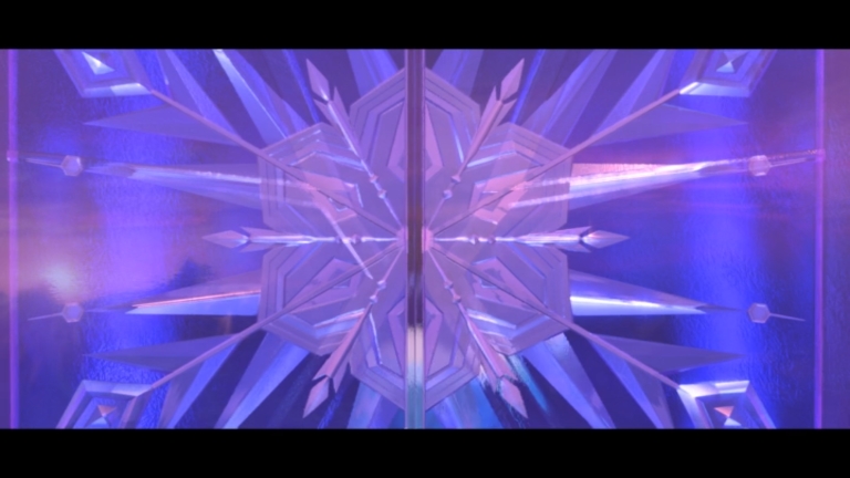 She has now done literally what she sang metaphorically at the beginning: “Turn away and slam the door.” And the final shot of the shiny snowflake takes us full circle, back to the very first line: “The snow glows white on the mountain tonight.” That’s a wrap.