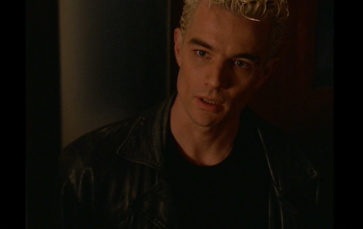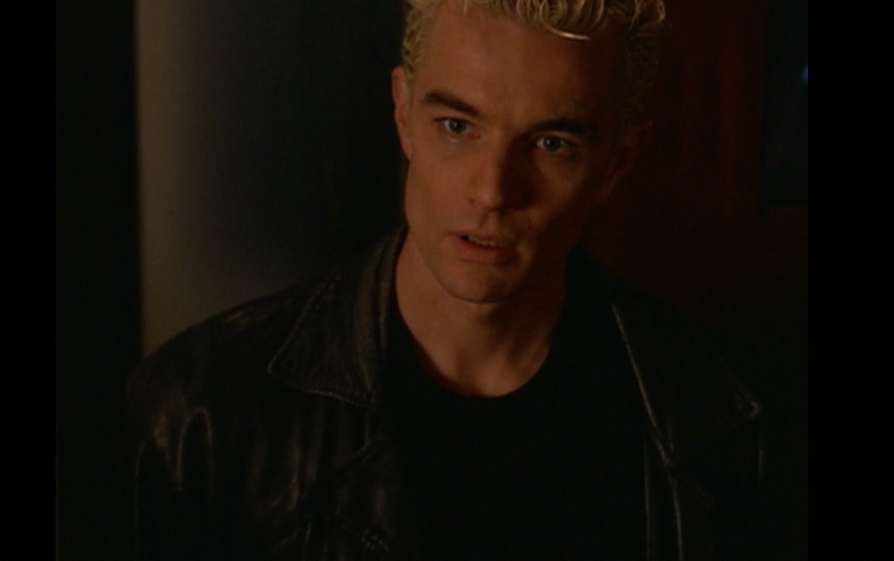 My favorite scene in my favorite episode is when Spike sees her for the first time post-resurrection. Spike, you see, loves Buffy more than anything on earth, and he’s lost her, he’s resigned himself to having his heart ripped out. Same old story. But he walks into the house, unsuspecting, distracted, worried about something else entirely – and there, at the top of the stairs, there she is.