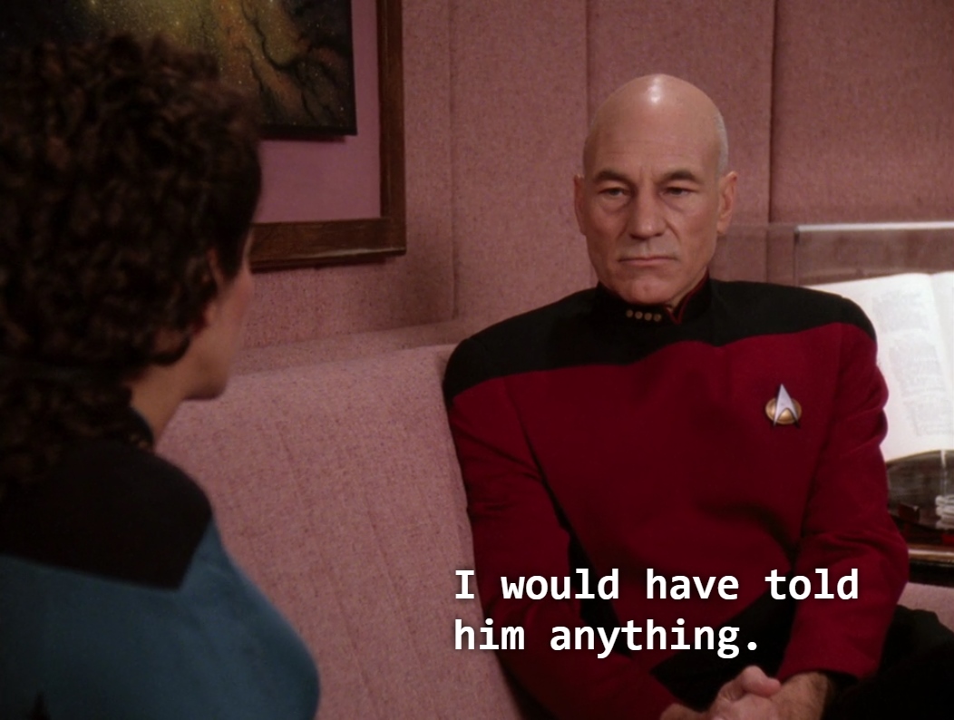 For the next ten seconds or so, he doesn’t say a word. He just – looks at her.